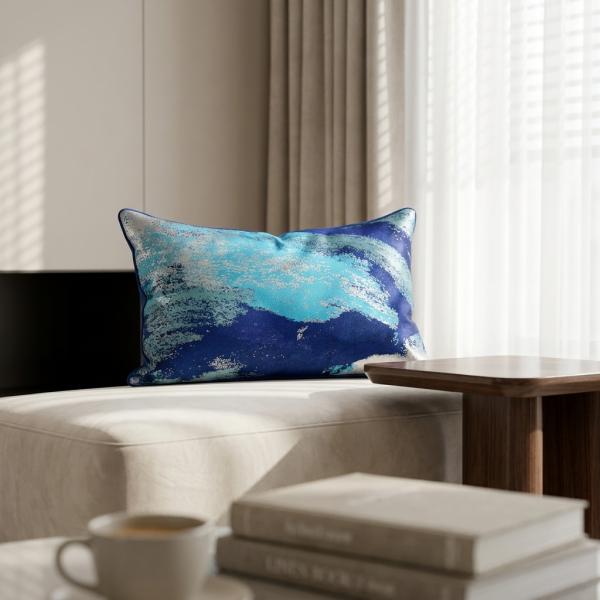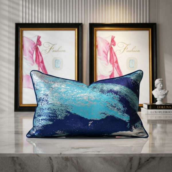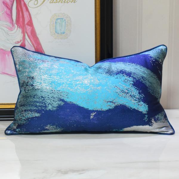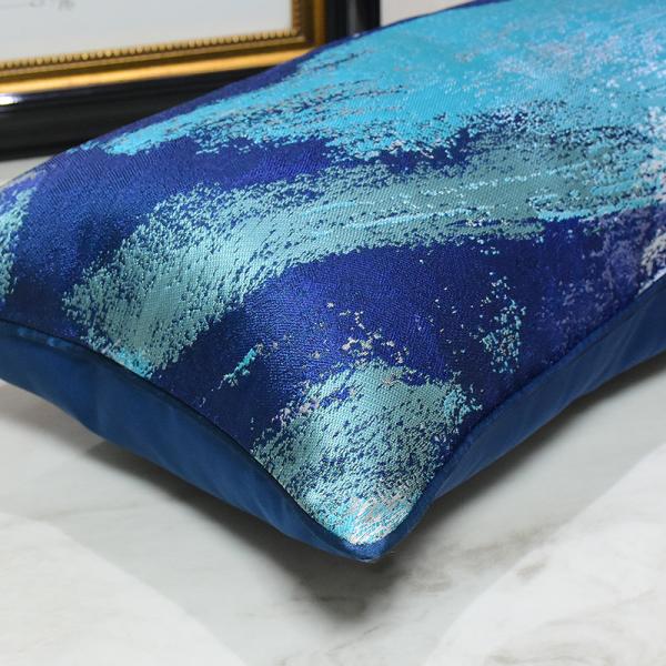 The blue and green gradient abstract texture jacquard waist pillow comes with a delicate metallic luster. Exquisite navy blue trim + invisible zipper, wear-resistant, skin-friendly and easy to maintain, light luxury minimalist long strip cushion cover suitable for the whole house