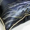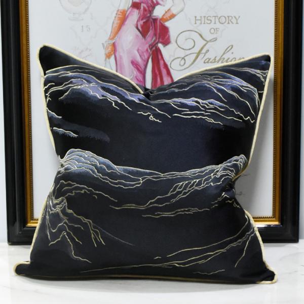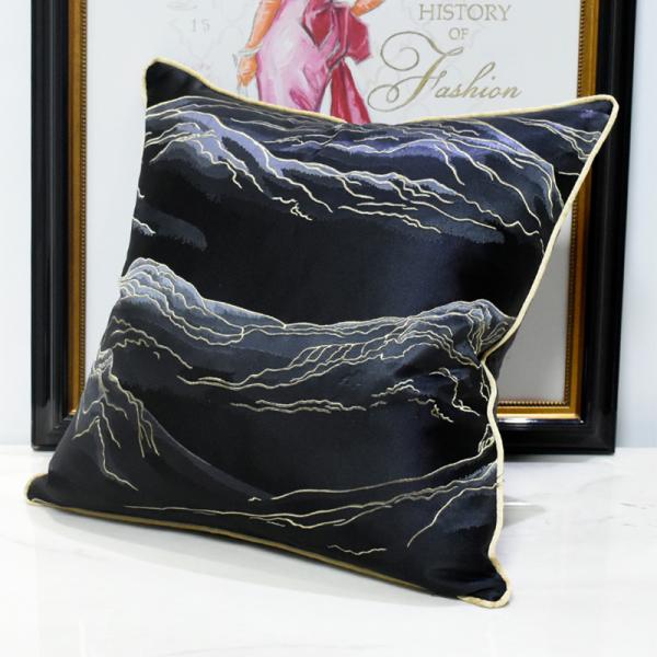 The continuous mountain lines are outlined with metallic gold lines, presenting an ink-wash landscape scene on a black satin background. Paired with the same color series of golden borders, the details are exquisite and high-end, instantly elevating the space's style.