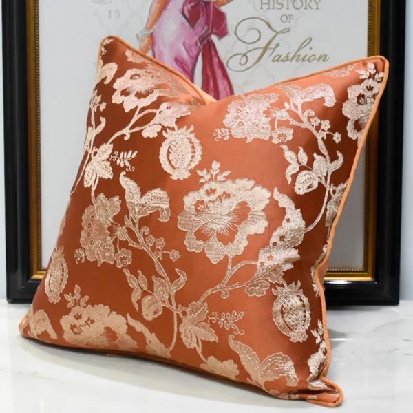 This orange jacquard floral pillowcase features a luxurious satin base with exquisite three-dimensional jacquard floral patterns, presenting a natural and soft luster on the surface. The touch is silky and delicate, and the color is warm and rich, adding a touch of sophistication to your living room, bedroom or light luxury style space. The invisible zipper design makes it convenient to disassemble and wash.