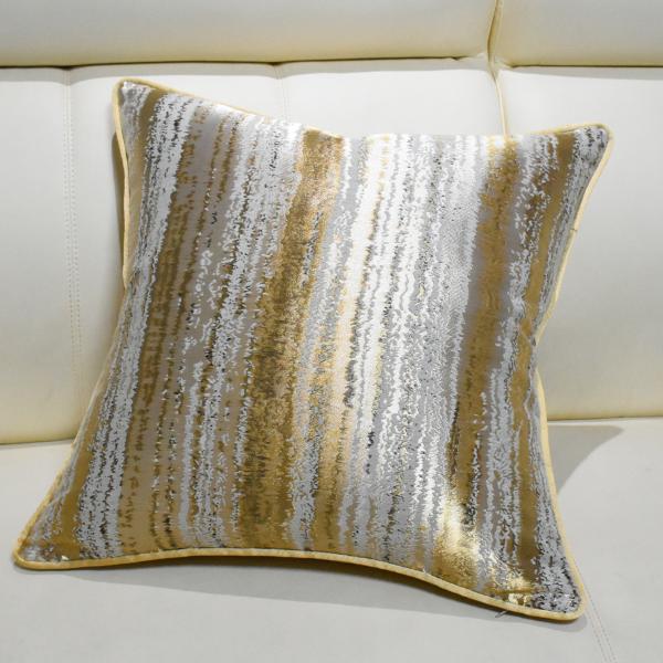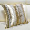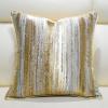 This double-sided design gold and silver artistic texture throw pillow features a vertical pattern with flowing light on the front and a solid color satin on the back. Exquisite edge-wrapped invisible zipper, wear-resistant and easy to maintain, light luxury minimalist all-style universal home decoration cushion cover