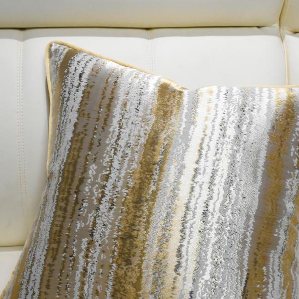The light luxury white gold mottled vertical texture throw pillow features dual-sided and dual-color styles to switch between as you like. The front features a three-dimensional jacquard texture interwoven with gold and silver, exuding a high-end, flowing and luxurious feel that instantly elevates the overall space style of the house. The back features a pure champagne satin finish, which is simple, elegant, versatile and timeless.