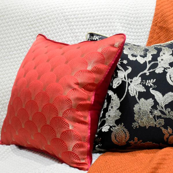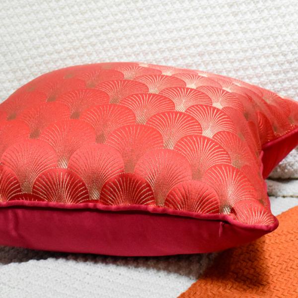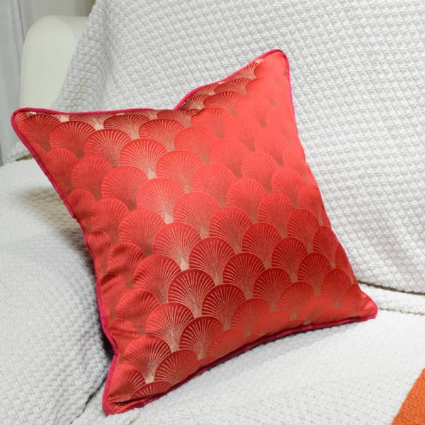 This red and gold fan-shaped jacquard pillowcase is the finishing touch of soft furnishings tailored for you who pursue texture. The front adopts high-precision yarn-dyed jacquard technology, weaving the classic fan-shaped (shell texture) pattern into the fabric. The red and gold interwoven luster flows under the light and shadow, giving it a light luxury feel. It is suitable for various home styles such as modern simplicity, new Chinese style, and American retro, easily enhancing the space's style. The back is made of solid-colored imitation silk fabric, which is fine and skin-friendly. It can be used on both sides, meeting your pursuit of details.