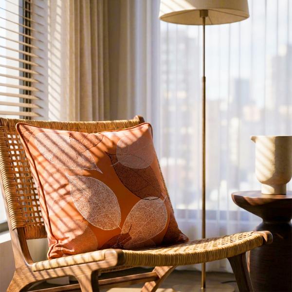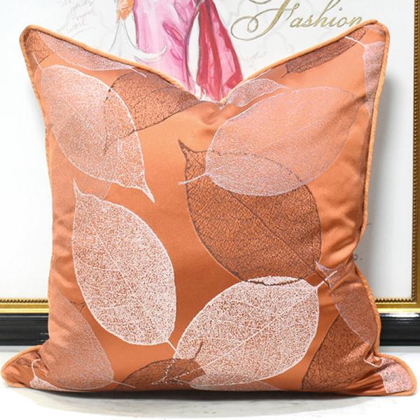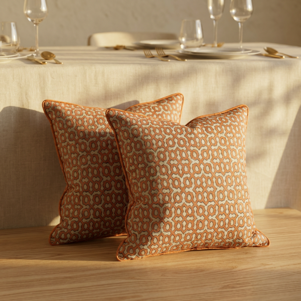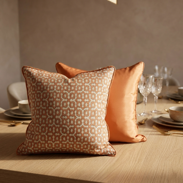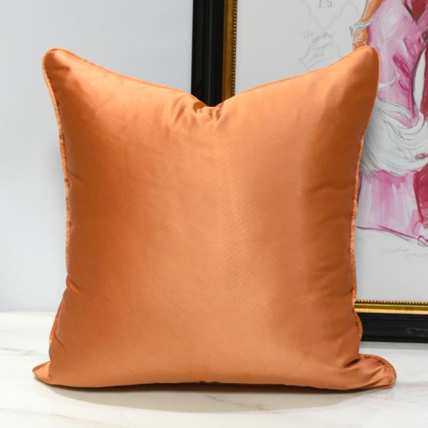 Silver-orange contrasting symmetrical geometric jacquard fabric, with a naturally fine and lustrous texture. Exquisite matching color trim + invisible zipper, durable and easy to disassemble and clean, vintage, wabi-sabi, minimalist decorative cushion cover suitable for the whole house