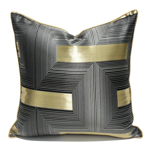 黑金轻奢 ArtDeco 几何鎏金抱枕套 高级意式极简客厅沙发靠垫