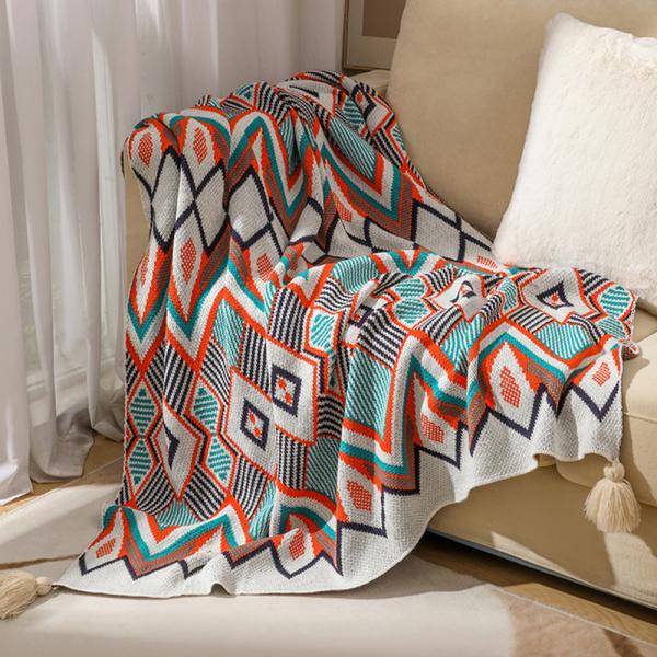 波西米亚几何印花流苏休闲毯 多功能装饰毯