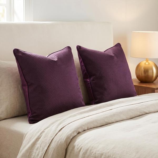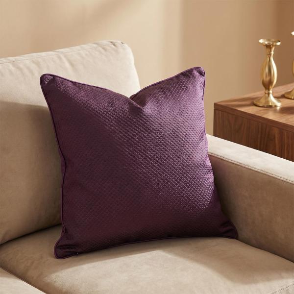 深紫色轻奢格纹ab款抱枕套 高级感现代简约沙发靠垫