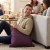 正面立体菱形格肌理提花,触感富有层次;背面哑光丝滑缎面,顺滑软糯,一只抱枕两种风格