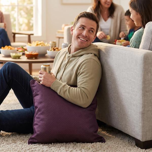 :正面立体菱形格肌理提花,触感富有层次;背面丝滑缎面,顺滑软糯,一只抱枕两种风格