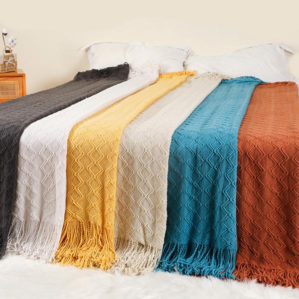 多色可选粗针织流苏盖毯 肌理感沙发床尾装饰搭毯