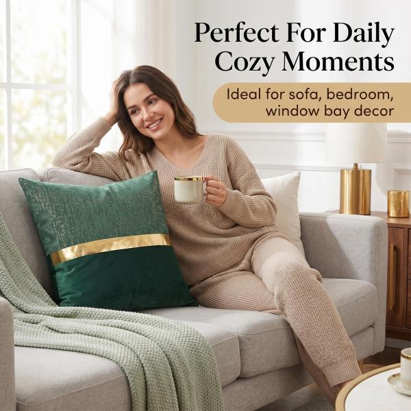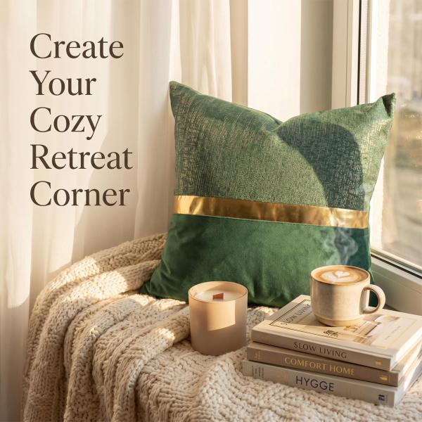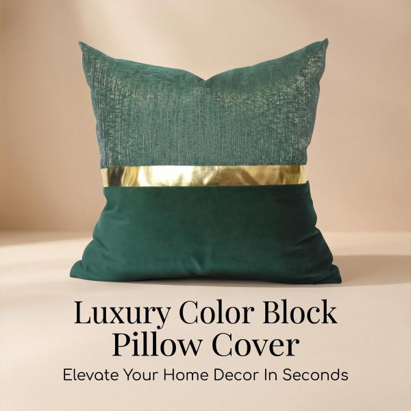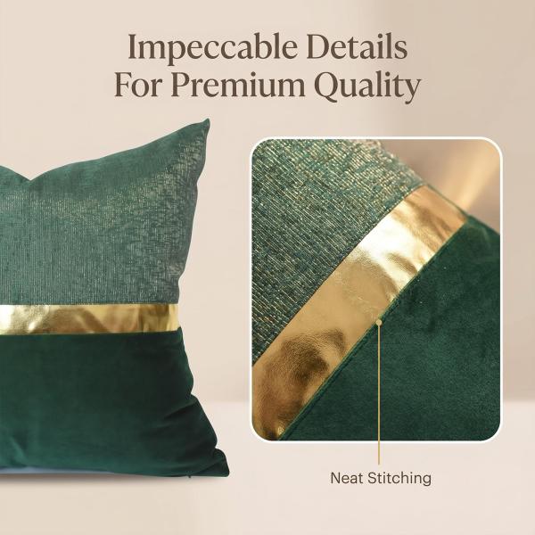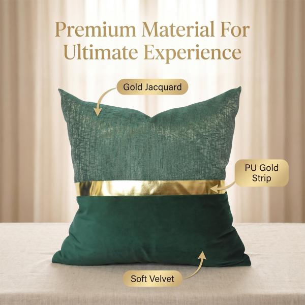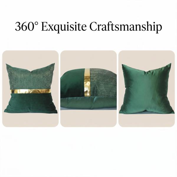 美式轻奢祖母绿拼接抱枕,金丝肌理 + 亮金装饰条 + 软糯天鹅绒,高级氛围感家居软装,