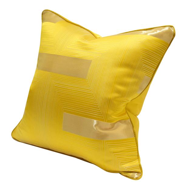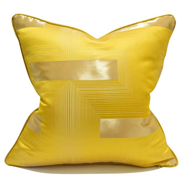 姜黄色轻奢 ArtDeco 几何鎏金抱枕套 明亮中古风客厅沙发靠垫