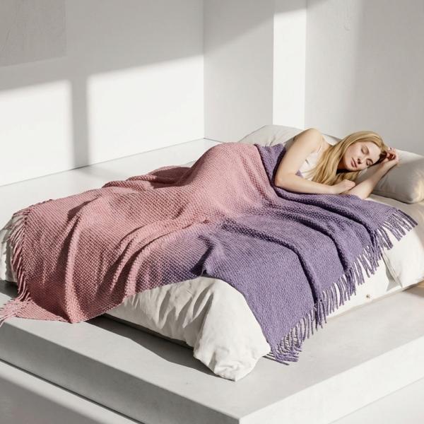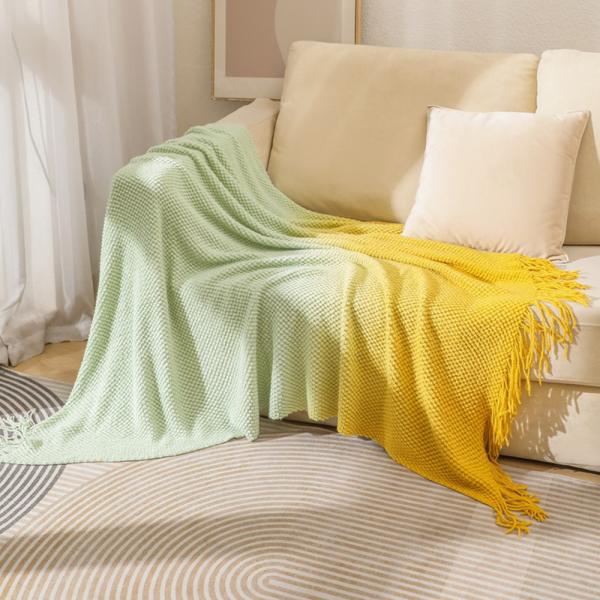 渐变豆豆针织工艺 多色可选适配性强 流苏锁边细节加固 一毯多用四季通用