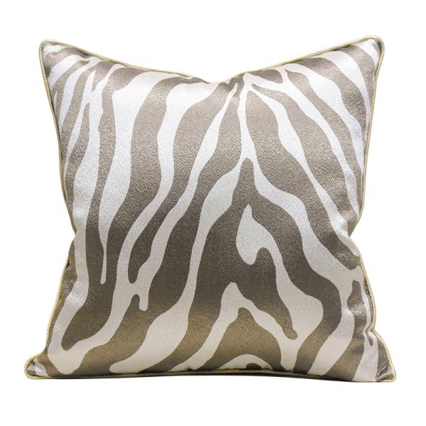 轻奢金棕斑马纹抱枕套 现代轻奢客厅沙发靠垫套