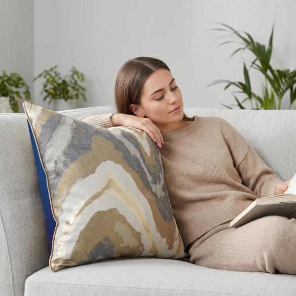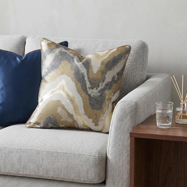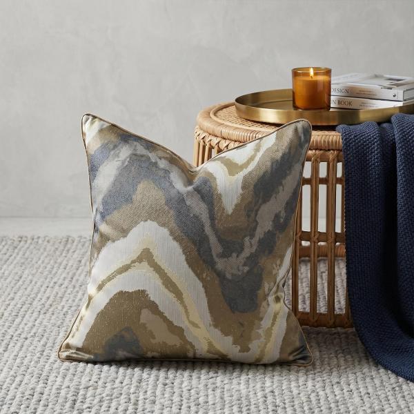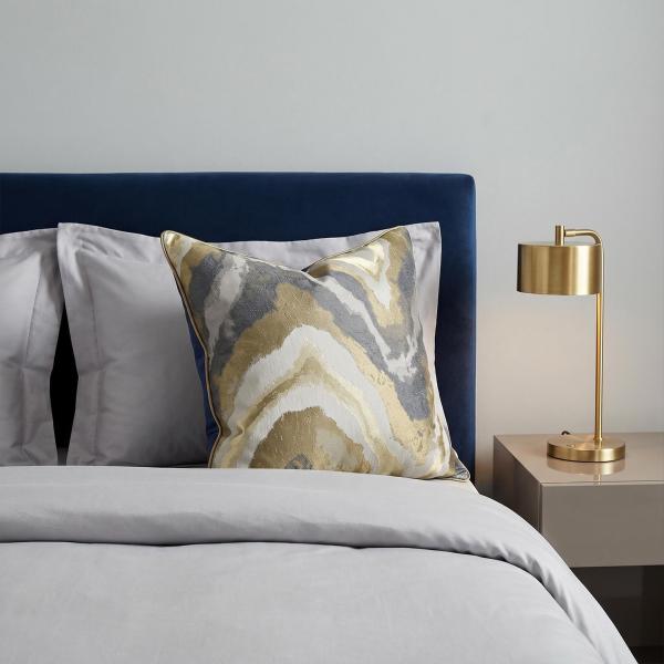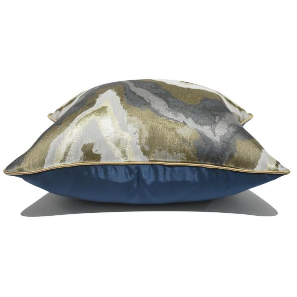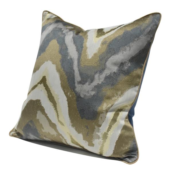 灰金撞色大理石山峦纹样,高精密立体织纹,正面提花 + 背面纯色雾霾蓝缎面