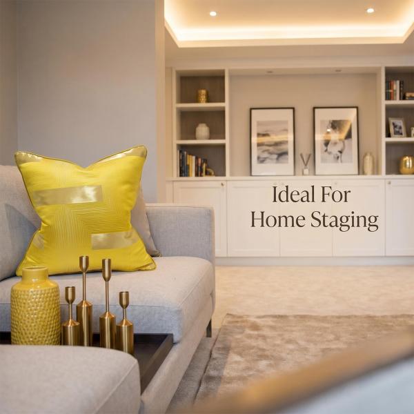 经典 ArtDeco 复古美学:艺术阶梯回纹几何线条,搭配流光鎏金方块,百年复古设计,高级有艺术感,软装氛围感点睛神器 治愈明亮姜黄暖色调:温柔亮眼姜黄色,提亮全屋暗沉空间,阳光治愈氛围感拉满,奶油风、原木风全屋百搭不出错